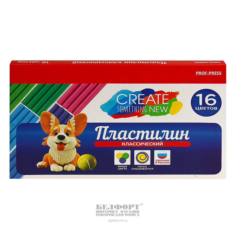 Пластилин 16цв, 320г, Prof-Press, со стеком, картон. уп.