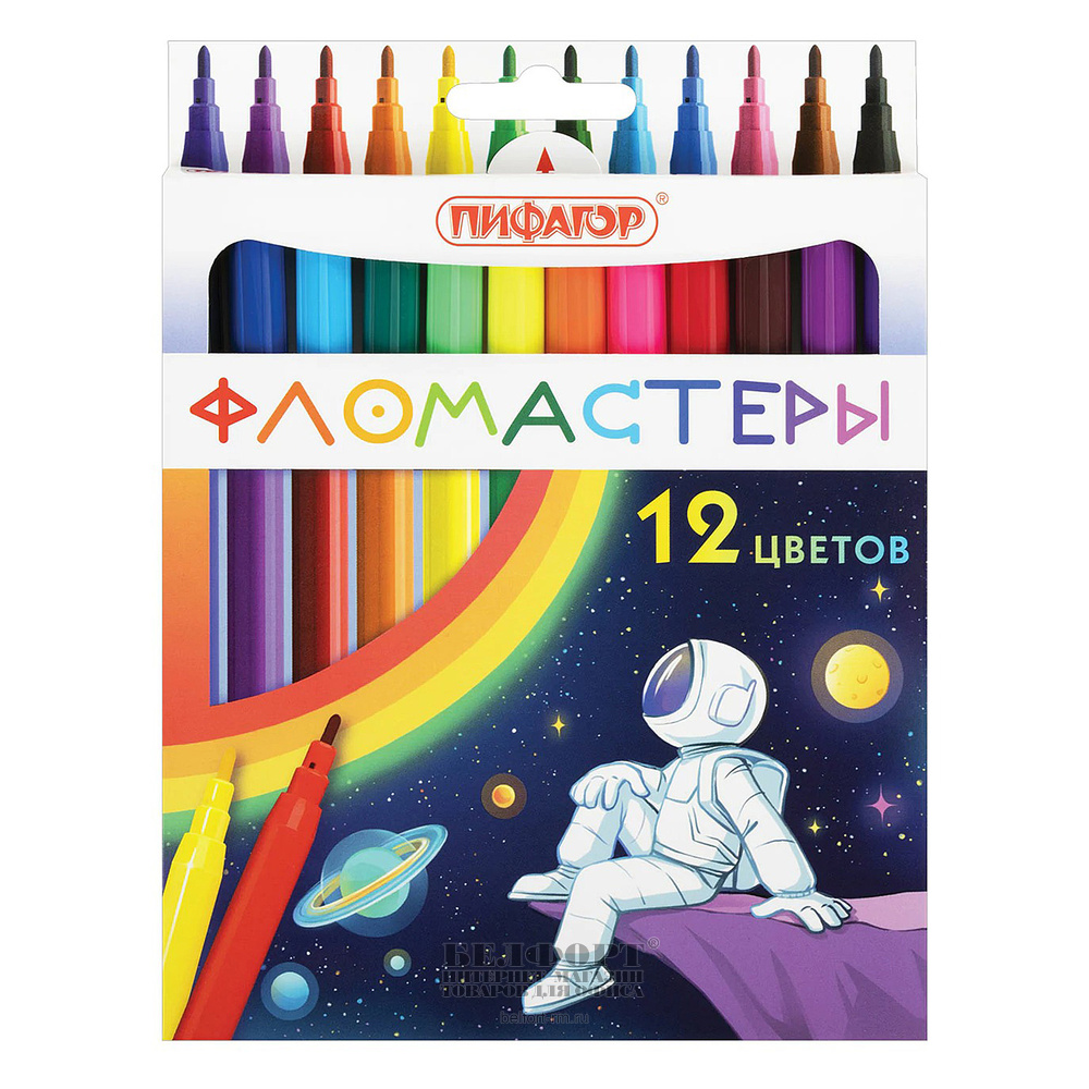 Фломастеры 12цв, Пифагор, "Космическая одиссея", смываемые, вентилируемый колпачок, 1мм, картон. уп.