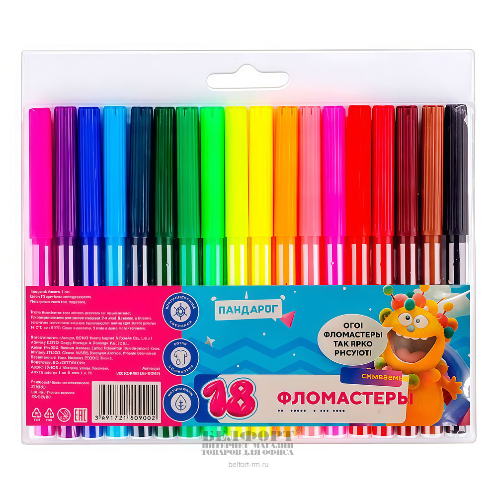 Фломастеры 18цв, ПандаРог, "Эмоциональный интеллект", смываемые, вентилируемый колпачок, 1мм, блистер