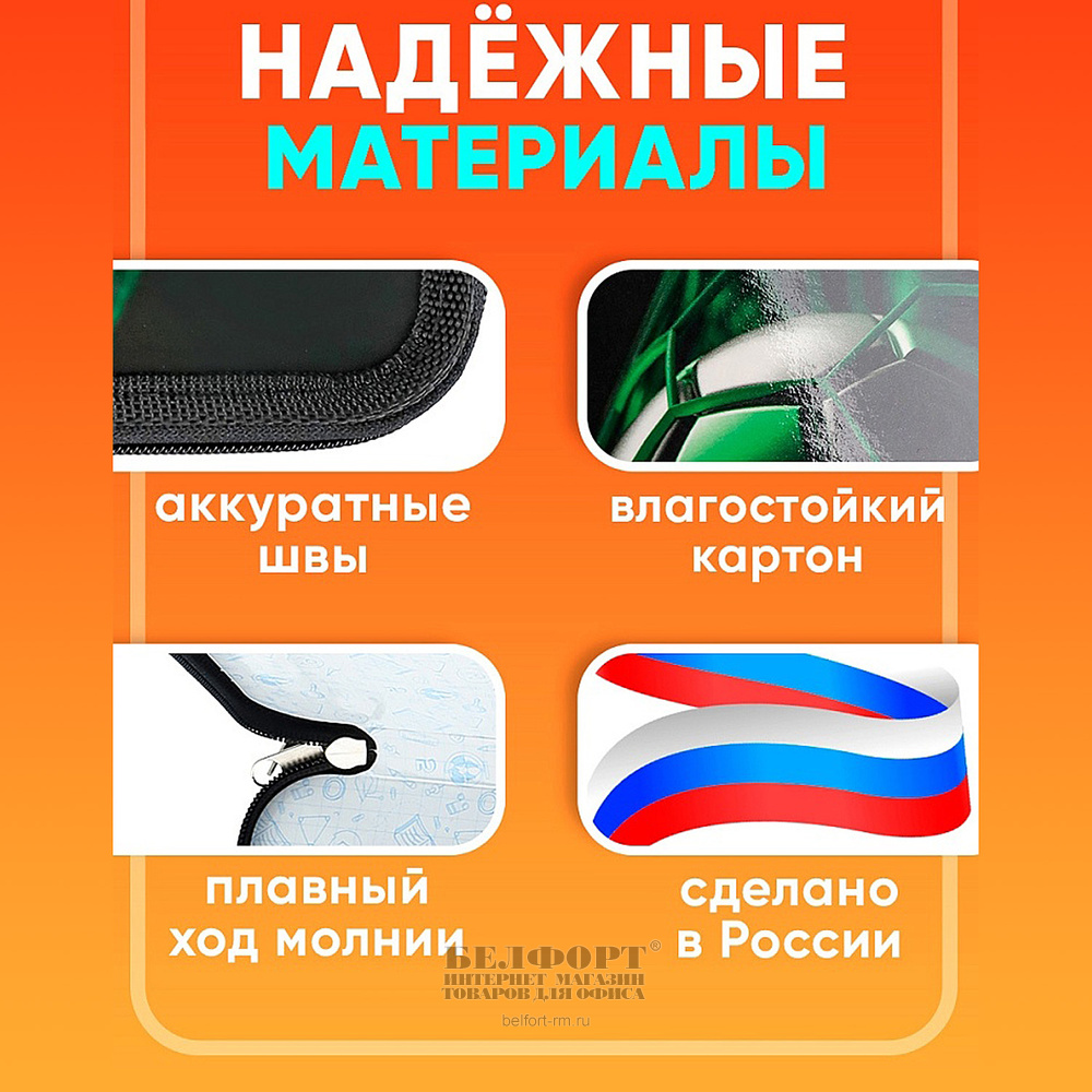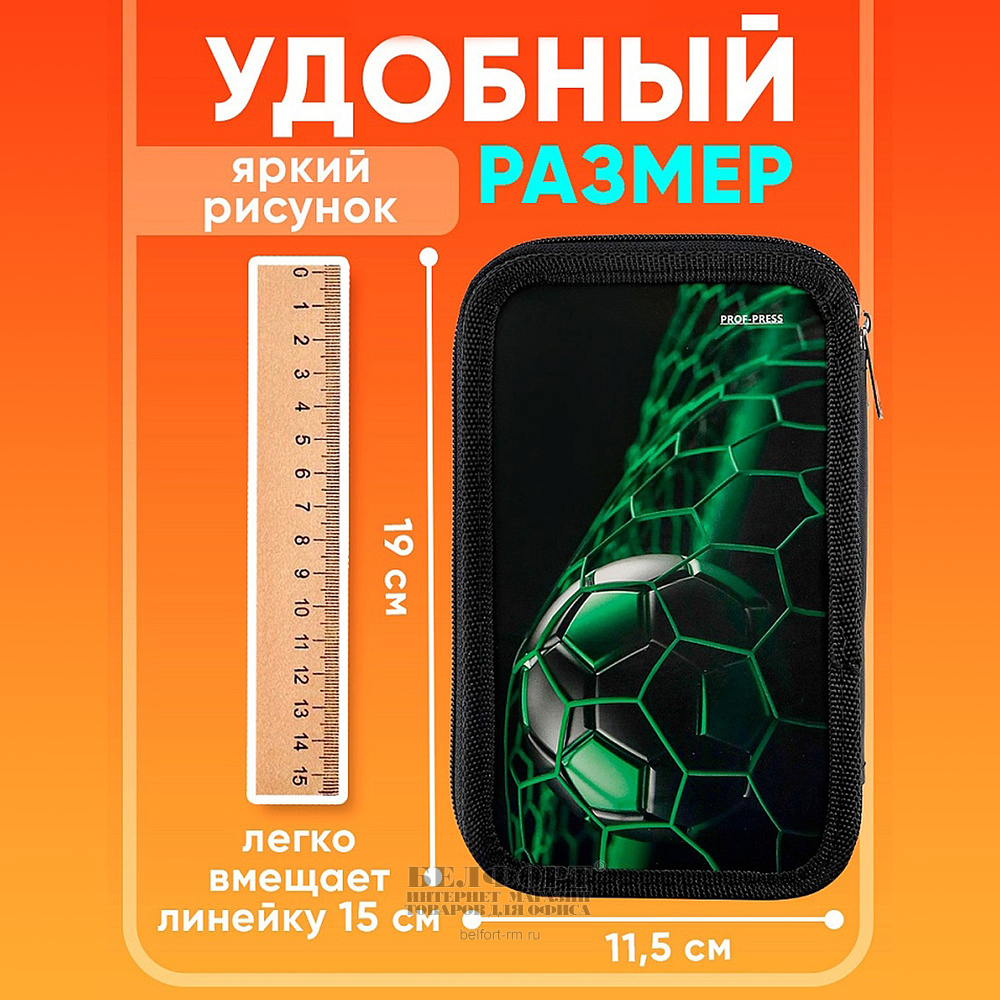 Пенал 2-х секционный, 19см*11,5см, картон ламинированный, Prof-Press, "Зеленая футбольная сетка"