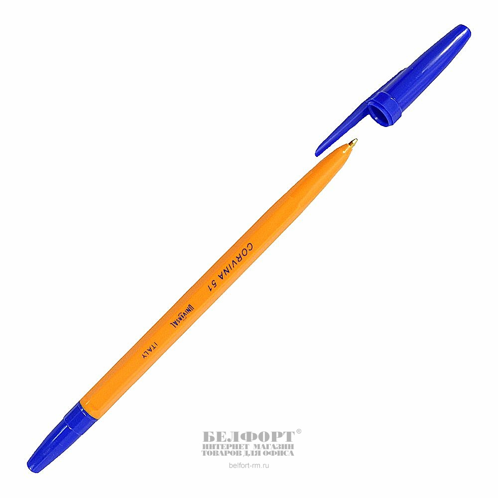 Ручка обычная, шарик., Corvina, "51", цвет чернил синий, толщина линии 0,7мм, диаметр шарика 1 мм, корпус оранжевый, длина стержня 150мм