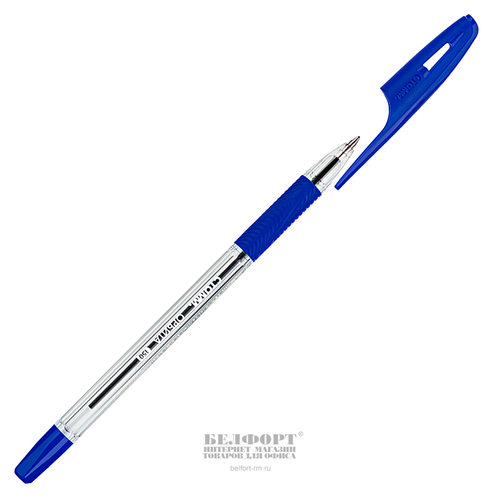Ручка обычная, шарик., СТАММ, "Орбита 150", цвет чернил синий, толщина линии 0,5мм, диаметр шарика 0,7 мм, корпус прозрачный, длина стержня 142мм, резиновый д