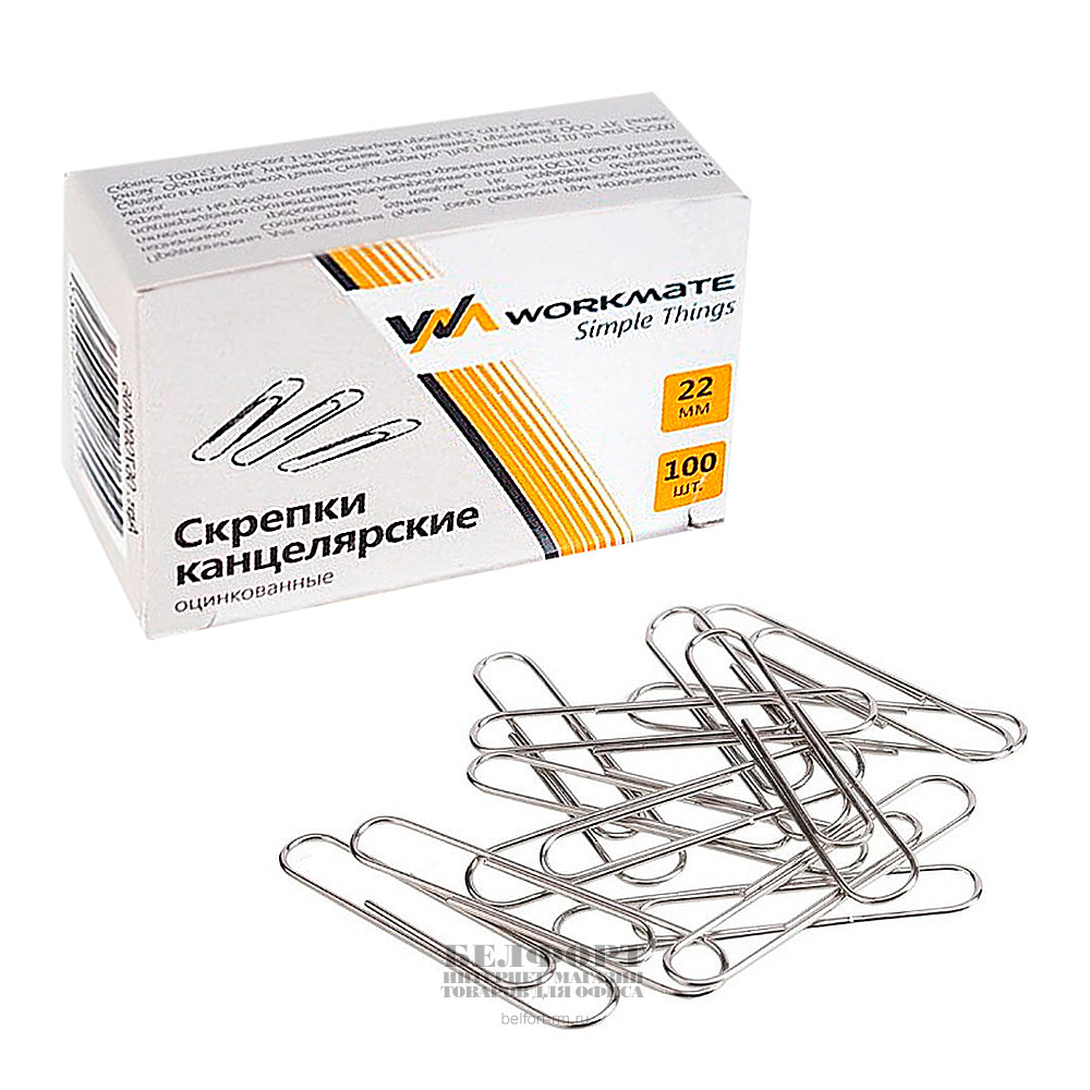 Скрепки овальные, 25мм, никелированные, Workmate, 100шт, картон. уп.