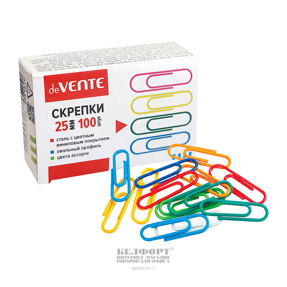 Скрепки овальные, 25мм, металл, цветные, deVENTE, 100шт, картон. уп.