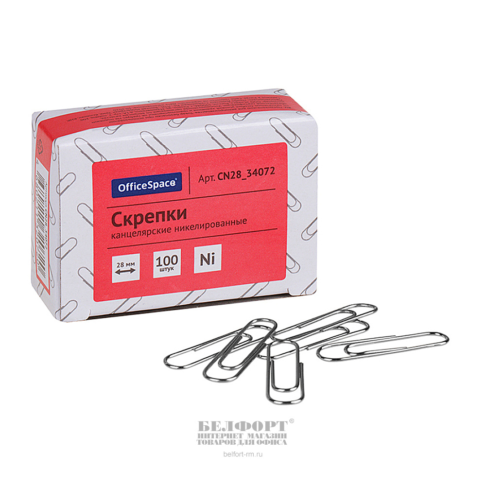Скрепки овальные, 28мм, никелированные, OfficeSpace, 100шт, картон. уп.