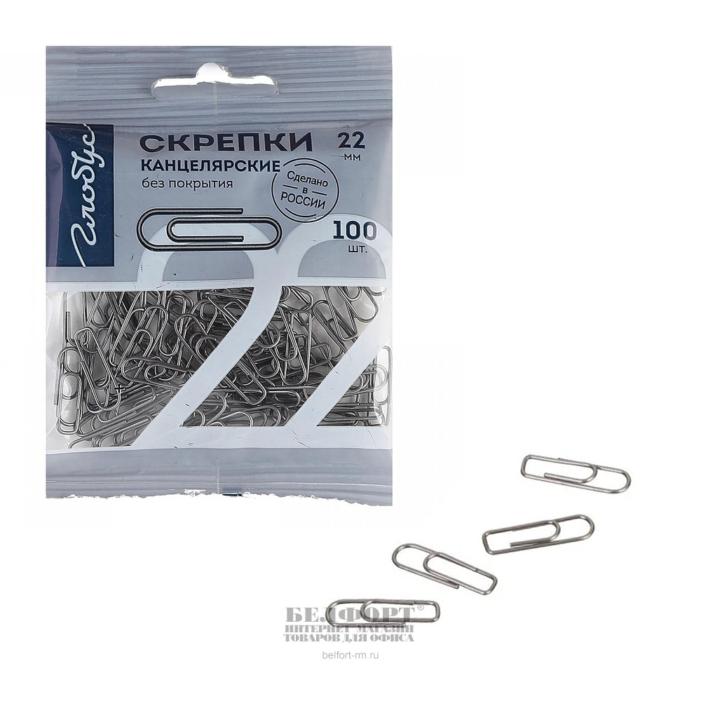 Скрепки овальные, 22мм, без покрытия, Глобус, 100шт, пакет