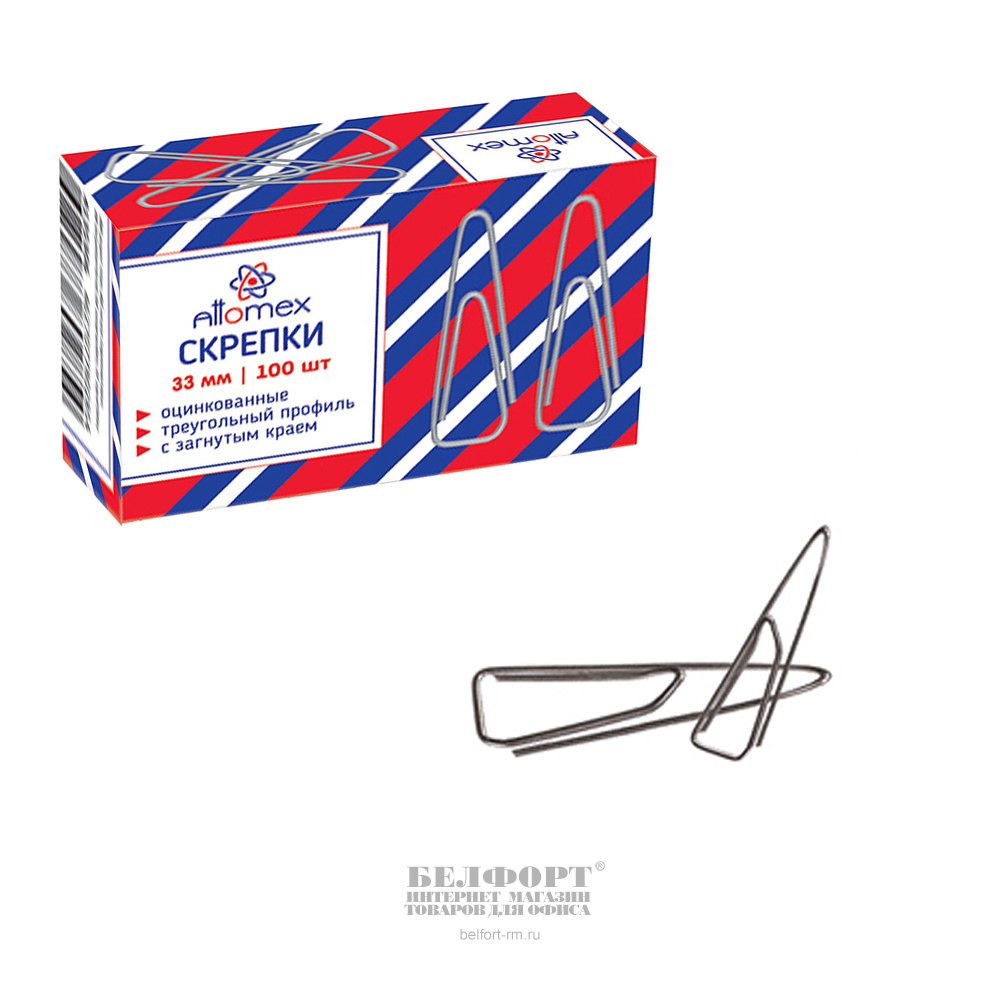 Скрепки треугольные, 33мм, оцинкованные, Attomex, 100шт, картон. уп.