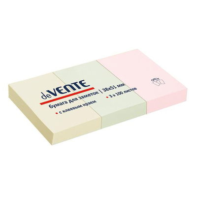 Добавить к сравнению258463Есть в наличии 13 уп.Блок с клеевым краем 51мм, 38мм, deVENTE, ассорти, 3цв по 100л, 300л, pastel (пастельный)
