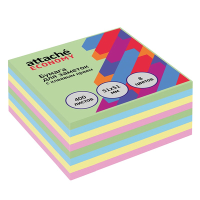 Добавить к сравнению258636Есть в наличии 58 уп.Блок с клеевым краем 51мм*51мм, Attache, "Economy", ассорти, pastel (пастельный), 8цв, 400л
