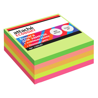 Добавить к сравнению258637Есть в наличии 16 уп.Блок с клеевым краем 51мм*51мм, Attache, "Economy", ассорти, neon (неоновый), 5цв, 400л