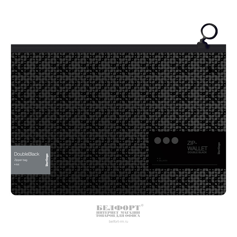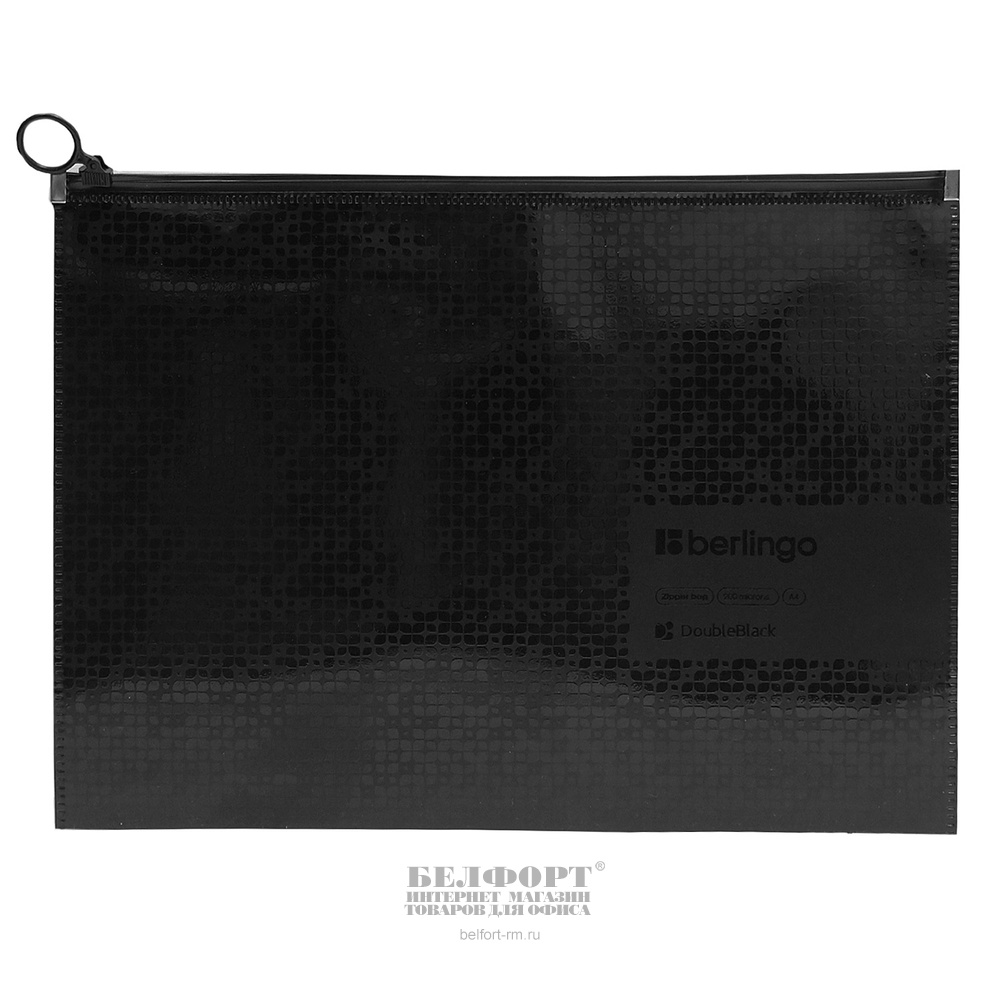 Папка на молнии, А4, 0,18мм, Berlingo, "DoubleBlack", 335мм*245мм, пластик, непрозрачная, черная