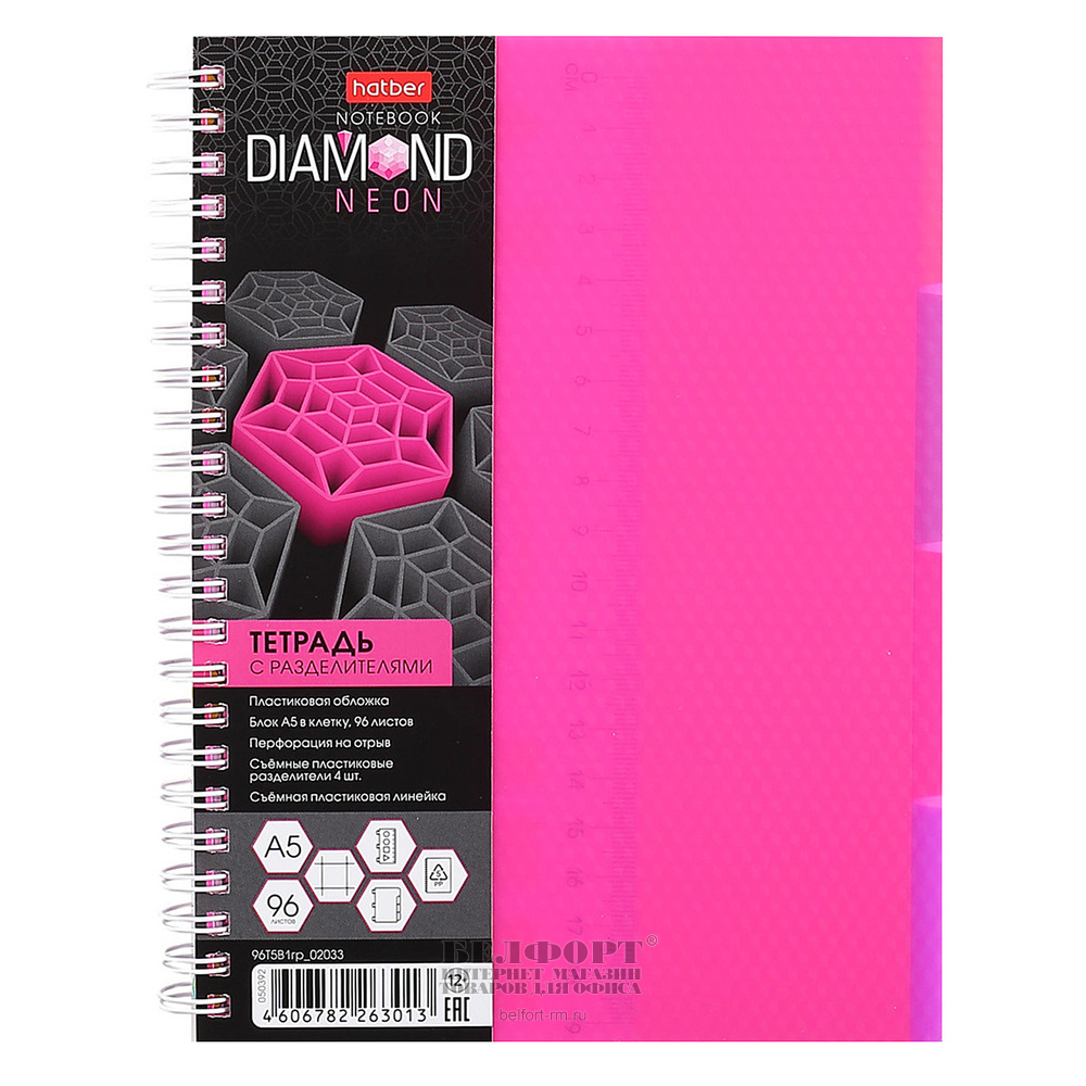 Тетрадь 100л, А5, клетка, без полей, Hatber, "Гармония цвета", на спирали(гребне), картон мелованный, с карманом, 60г⁄м², белизна 100%
