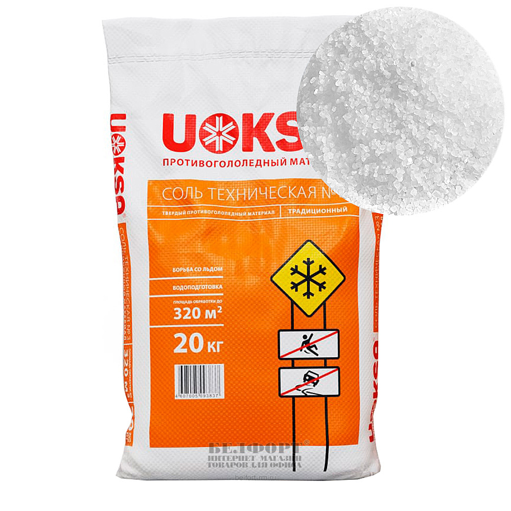 Реагент антигололедный 20кг, UOKSA, до -20C, техническая соль N3, мешок