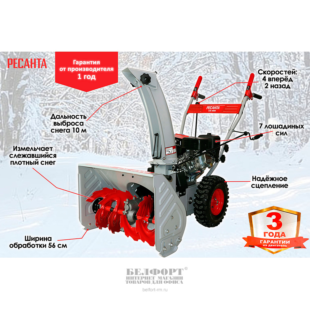Снегоуборщик Ресанта, СБ 4000, бензиновый, 4-х тактный, 7.0 л.с.