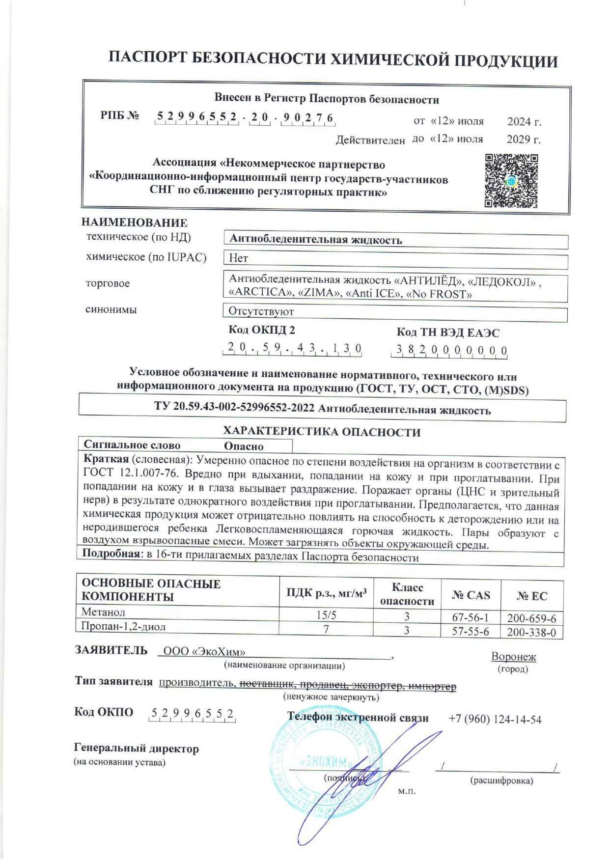 Зимняя стеклоомывающая незамерзающая жидкость ЭкоХим, "Антилед. До -30", 4,3л, ПЭТ
