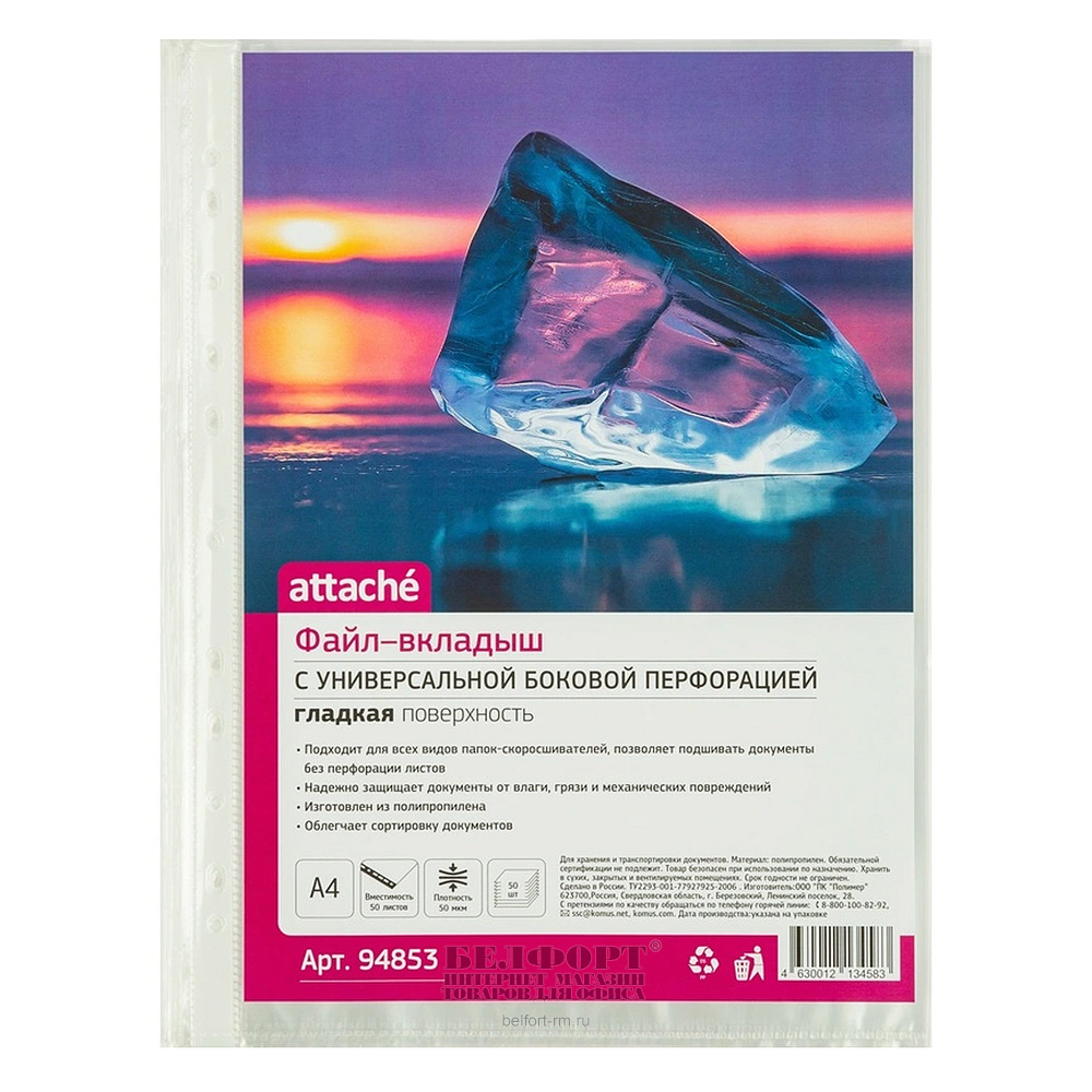 Папка-файл 50мкм, А4, Attache, с перфорацией, 50шт, прозрачная