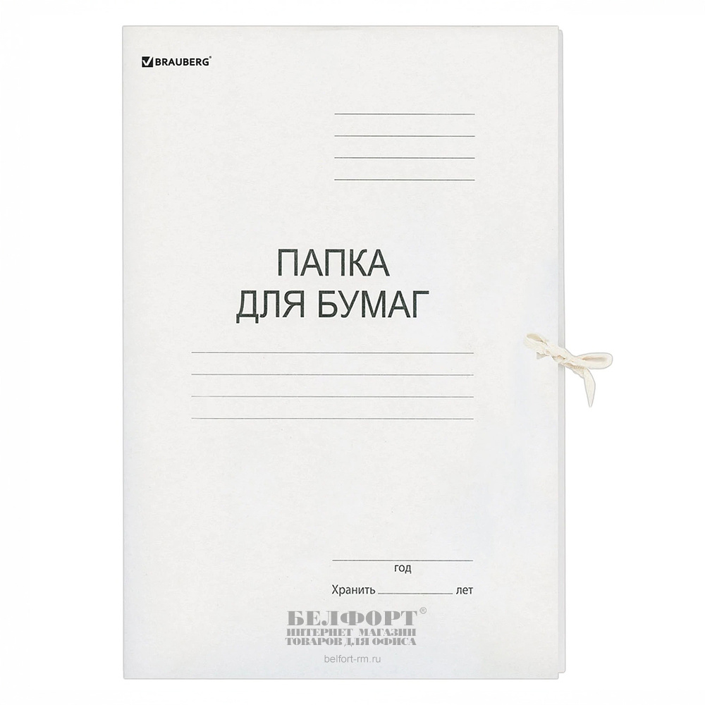Папка на завязках А4, 440г⁄м², картон мелованный, белая, Brauberg, ширина корешка 25мм