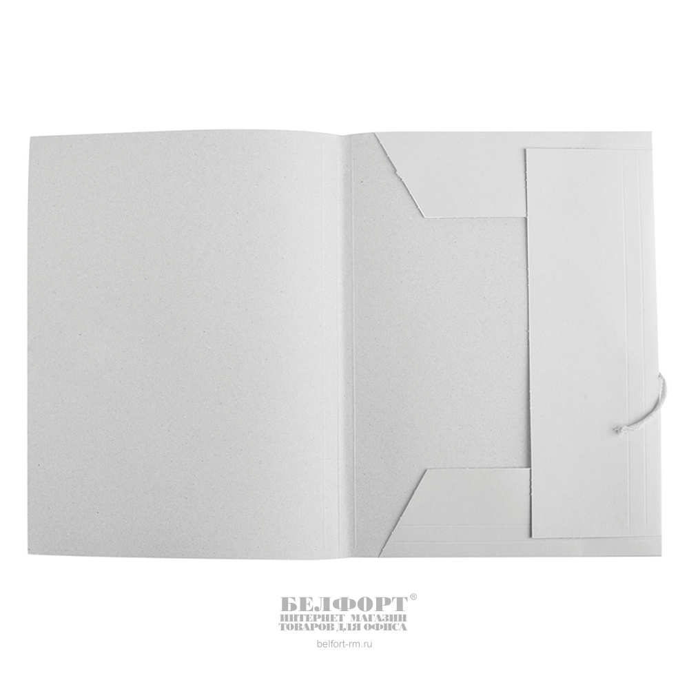 Папка на завязках А4, 380г⁄м², картон немелованный, белая, OfficeSpace, ширина корешка 40мм, 4 завязки