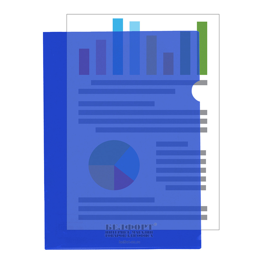 Папка-уголок А4, 0,15мм, пластик, СТАММ, непрозрачная, синяя