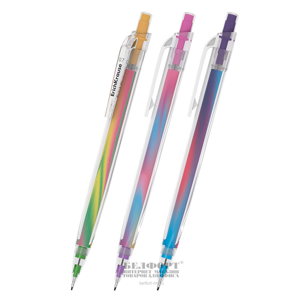 Карандаш механический 0,7мм, Erich Krause, "Galaxy", корпус ассорти, с ластиком, треугольный