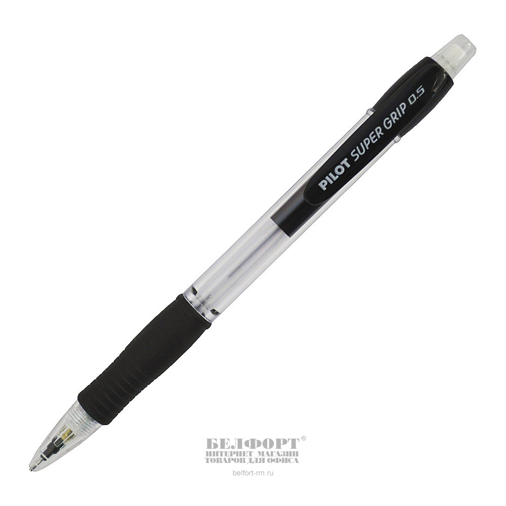 Карандаш механический 0,5мм, HB(ТМ), Pilot, "Super Grip", корпус черный, с ластиком, резиновый держатель, круглый