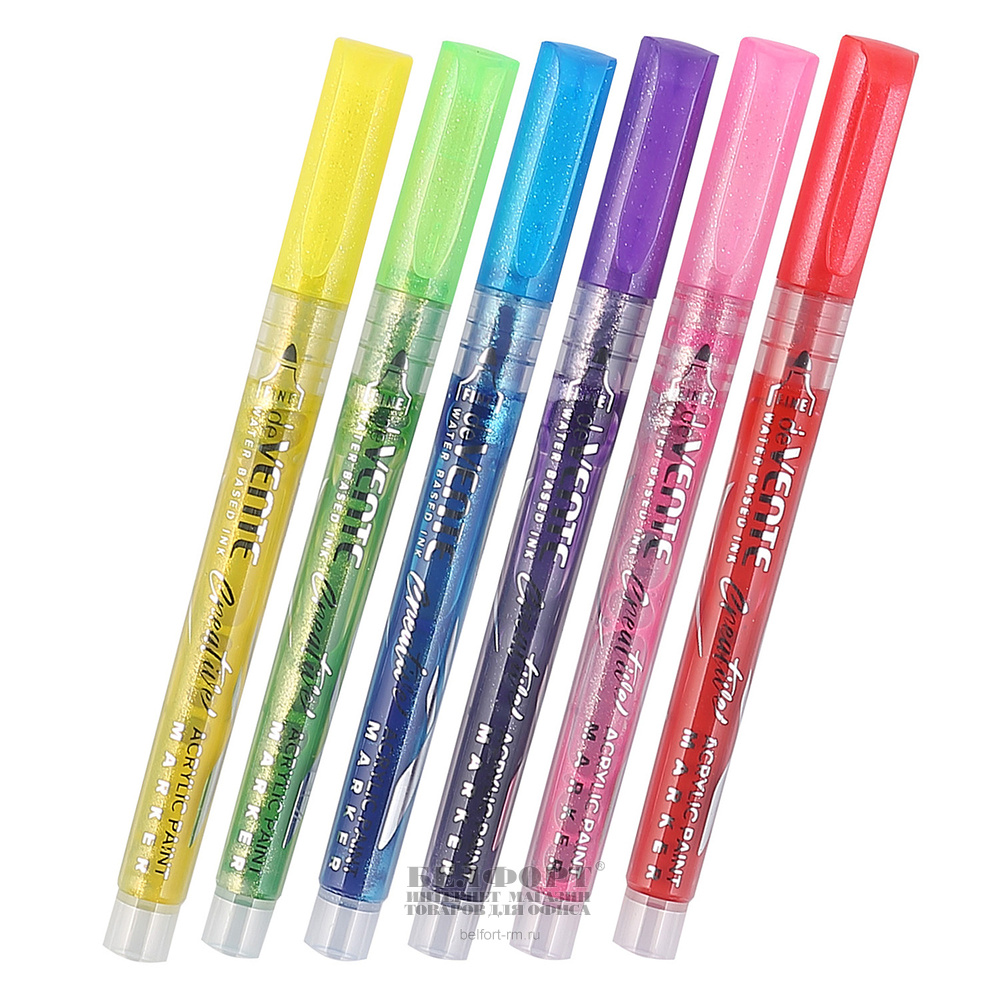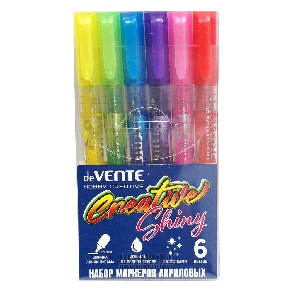 Набор маркеров акриловый, 6шт, deVENTE, "HOBBY CREATIVE. Shiny", 1,5мм, ассорти, круглый(пулевидный) наконечник, с блестками, пластик. уп.