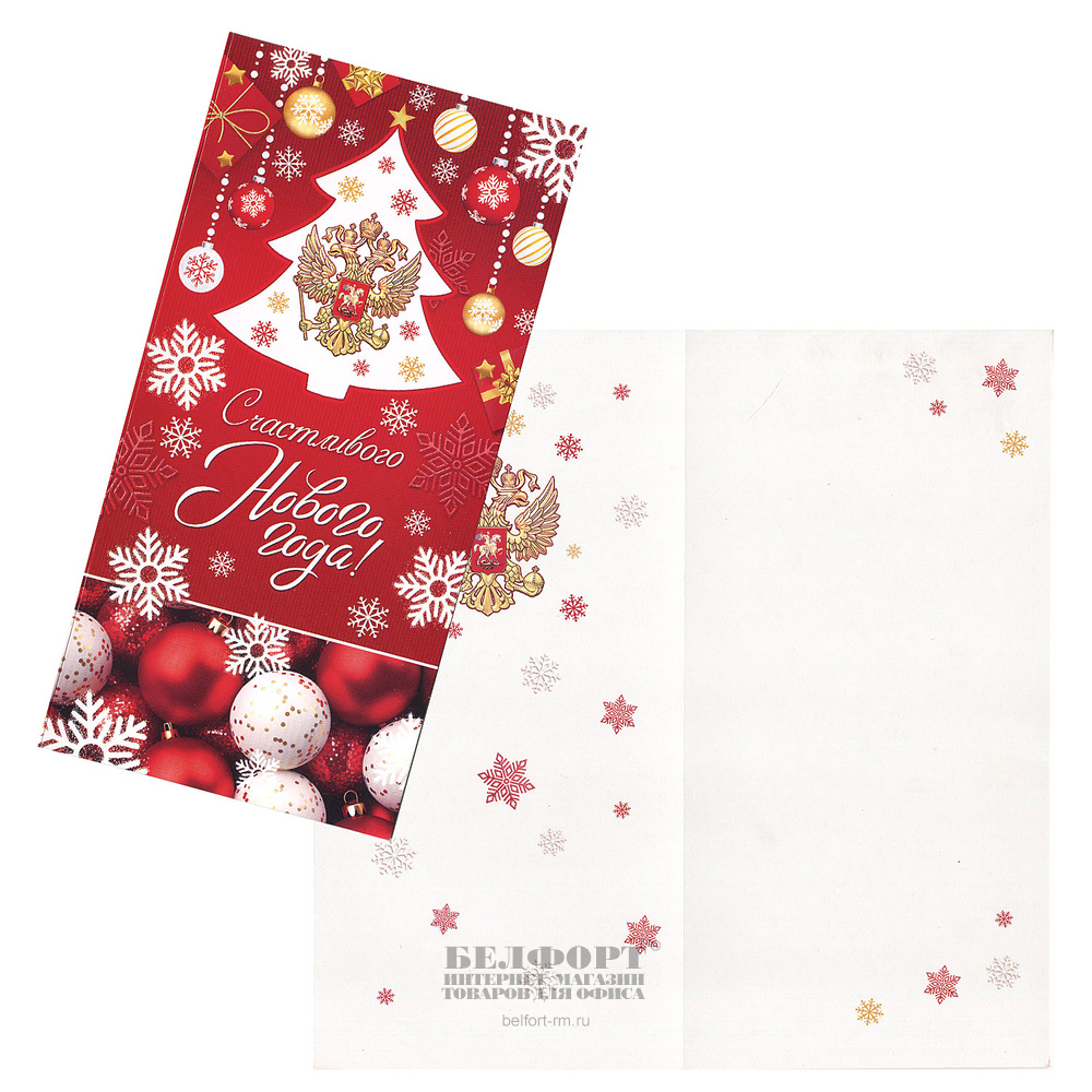 Открытка "Счастливого Нового Года! Госсимволика. Елка", 21см*10,5см, евро, вертикальная