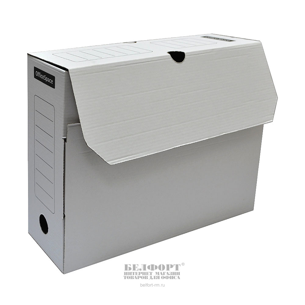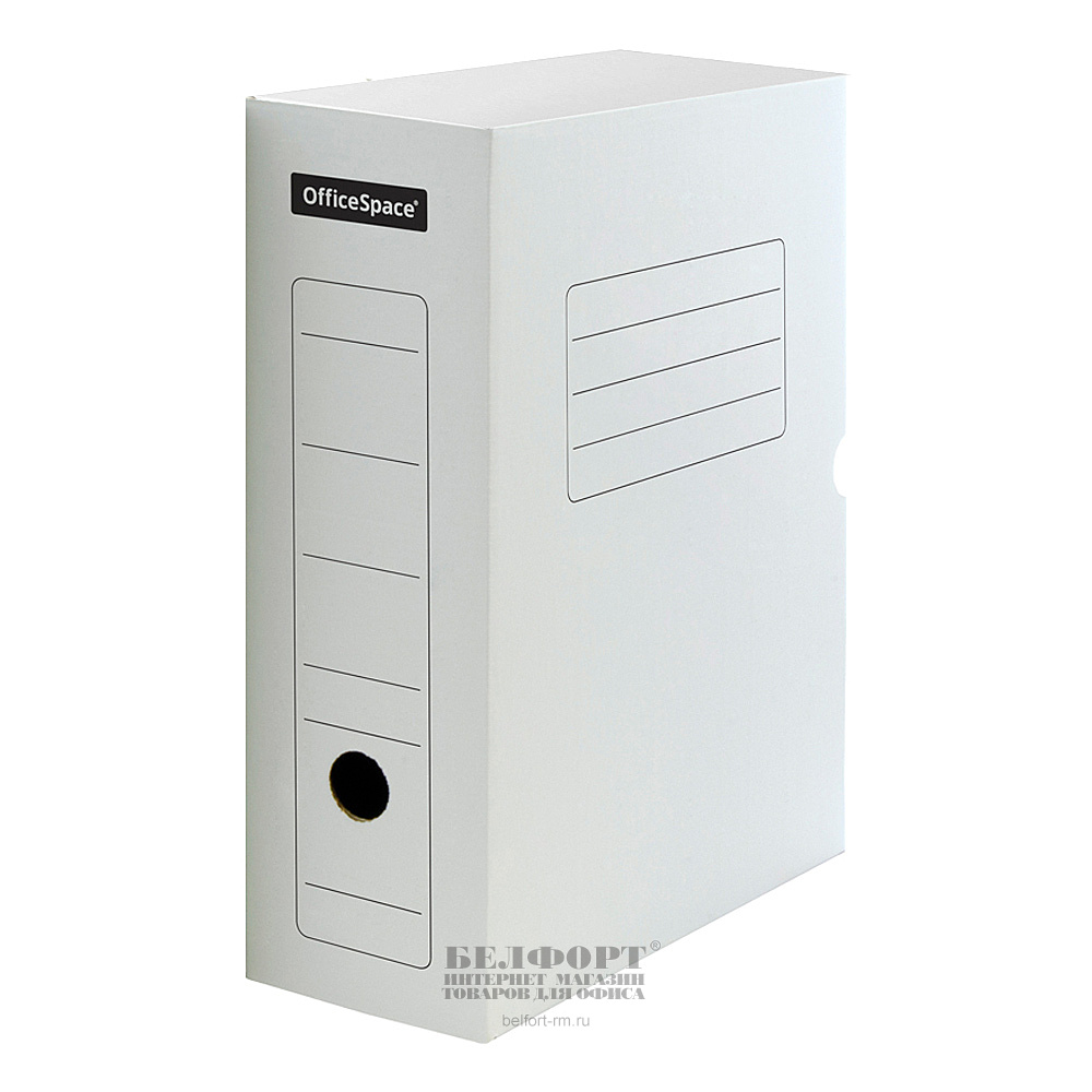 Короб архивный микрогофрокартон, с клапаном, ширина корешка 100мм, белый, А4, OfficeSpace