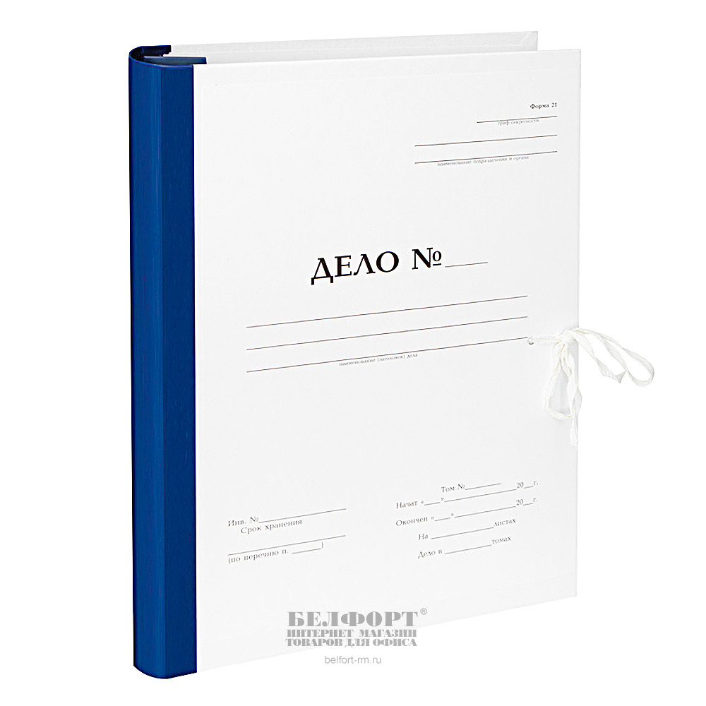 Папка архивная картон+бумвинил, на завязках, ширина корешка 50мм, синяя, А4, OfficeSpace, "Форма 21", для переплета, с гребешками, 2 завязки