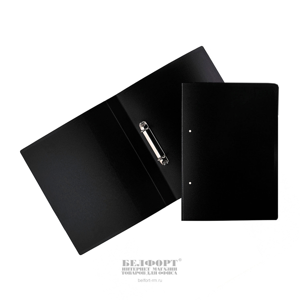 Папка на 2-х кольцах А4, пластик, 0,7мм, Бюрократ, ширина корешка 27мм, черная, торцевой и внутренний карман