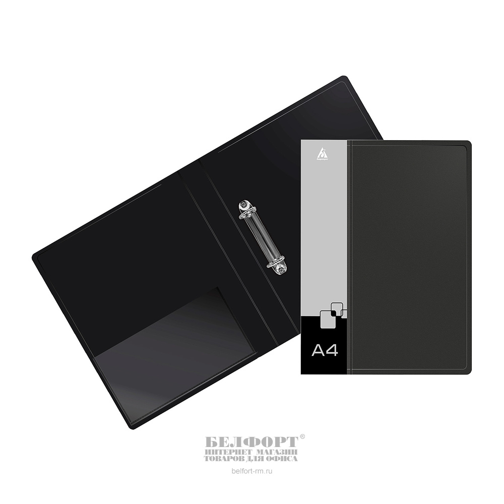Папка на 2-х кольцах А4, пластик, 0,8мм, Бюрократ, ширина корешка 40мм, черная, торцевой и внутренний карман