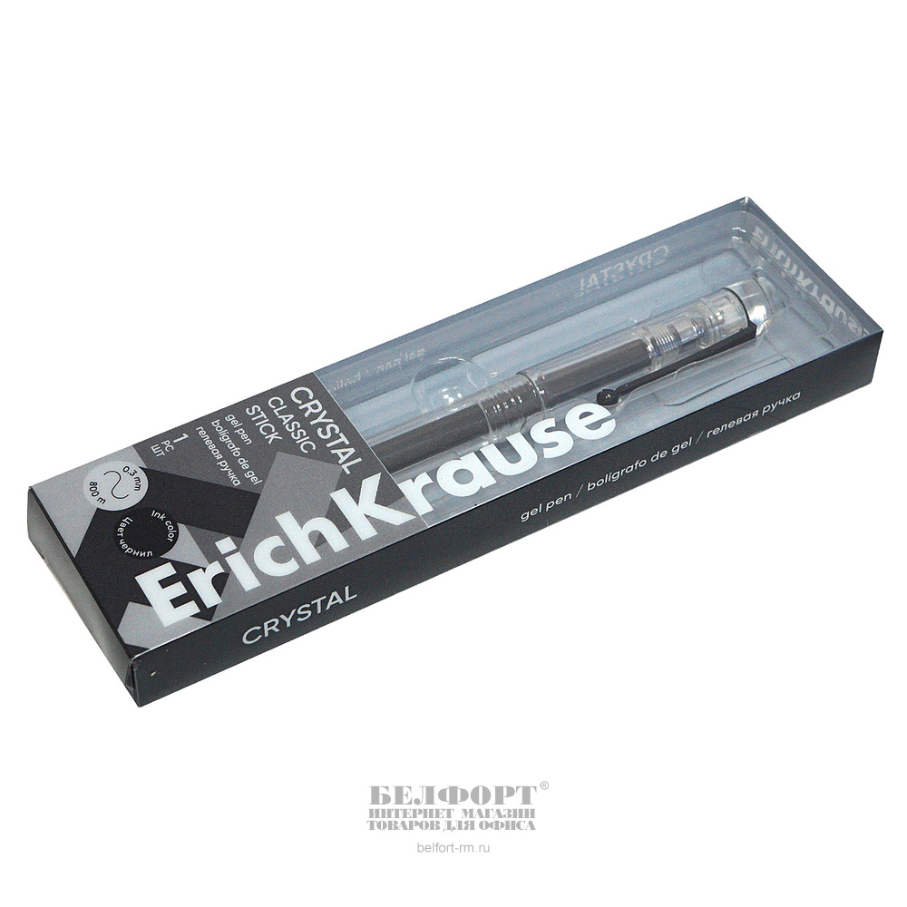 Ручка обычная, гел., Erich Krause, "Crystal Stick Classic", цвет чернил черный, толщина линии 0,3мм, диаметр шарика 0,7 мм, длина стержня 130мм, корпус прозр