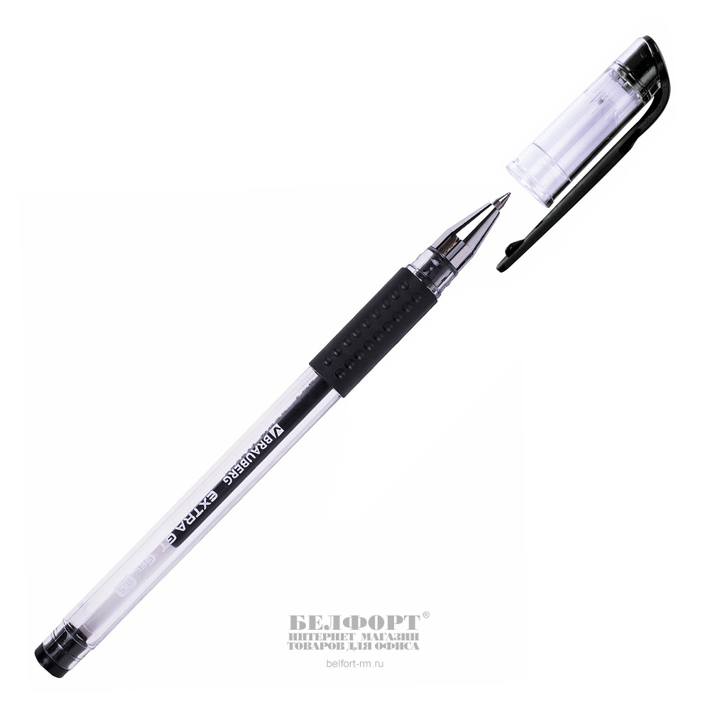 Ручка обычная, гел., Brauberg, "Extra GT", цвет чернил черный, толщина линии 0,35мм, диаметр шарика 0,7 мм, длина стержня 130мм, корпус прозрачный, резиновый