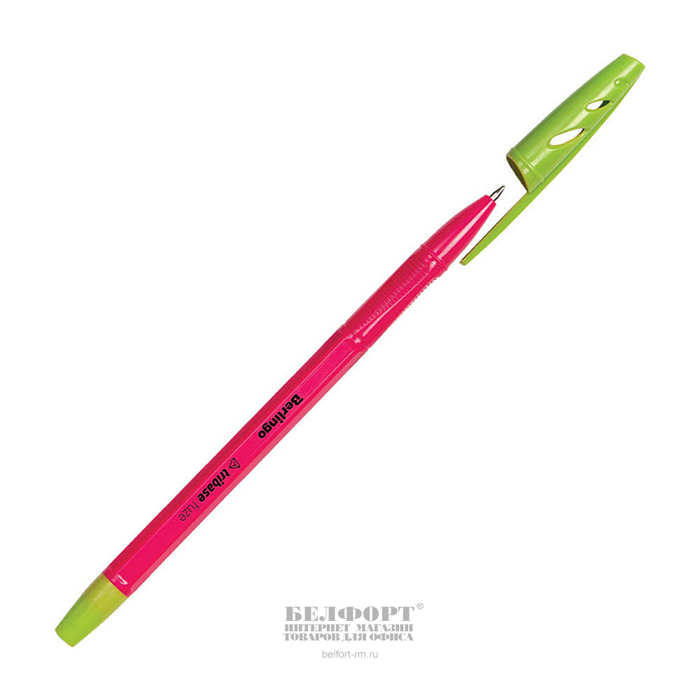 Ручка обычная, шарик., Berlingo, "Tribase", "Neon", цвет чернил синий, толщина линии 0,5мм, диаметр шарика 0,7 мм, на масляной основе, корпус ассорти, длина ст