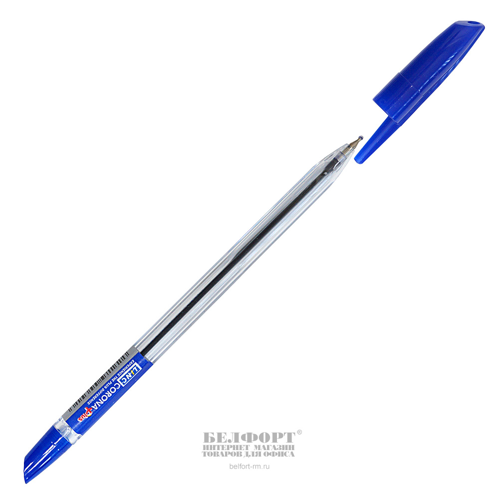 Ручка обычная, шарик., Linc, "Corona Plus", цвет чернил синий, толщина линии 0,35мм, диаметр шарика 0,7 мм, корпус прозрачный, длина стержня 138мм