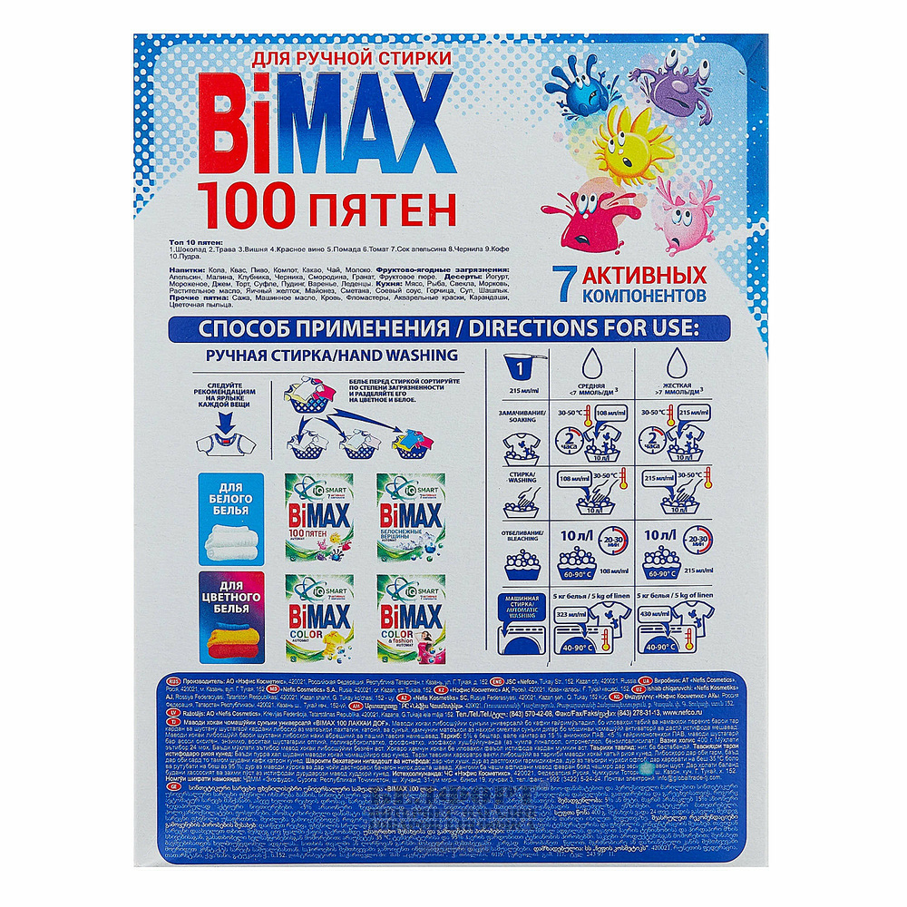 Порошок стиральный BiMAX, "100 пятен", 400г, ручная стирка, картон. уп.