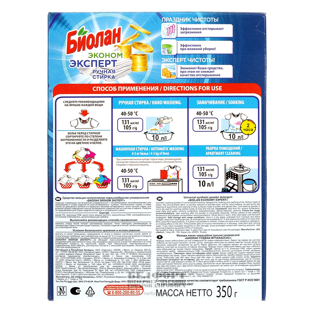 Порошок стиральный Биолан, "Эконом Эксперт", 350г, ручная стирка