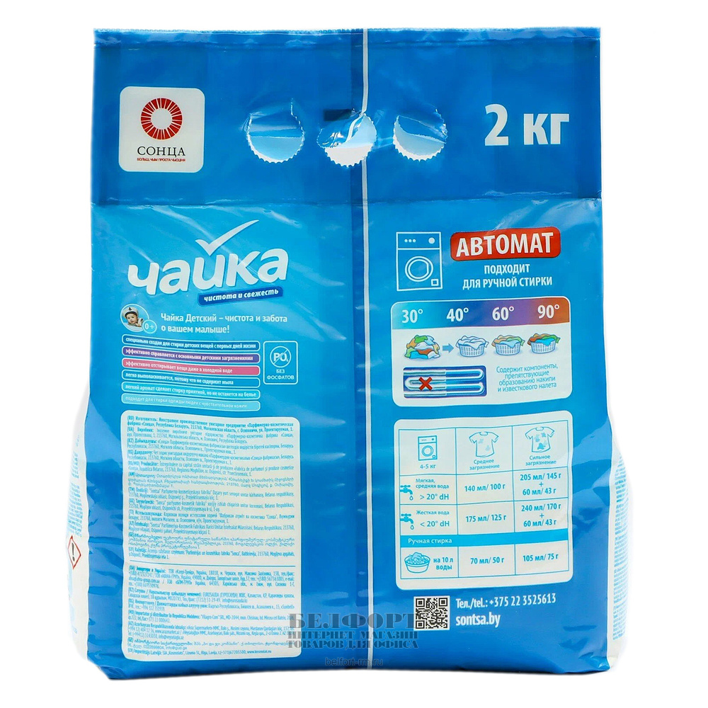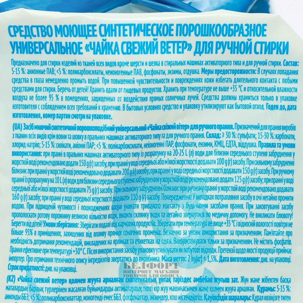 Порошок стиральный Чайка, "Свежий ветер", 2кг, ручная стирка
