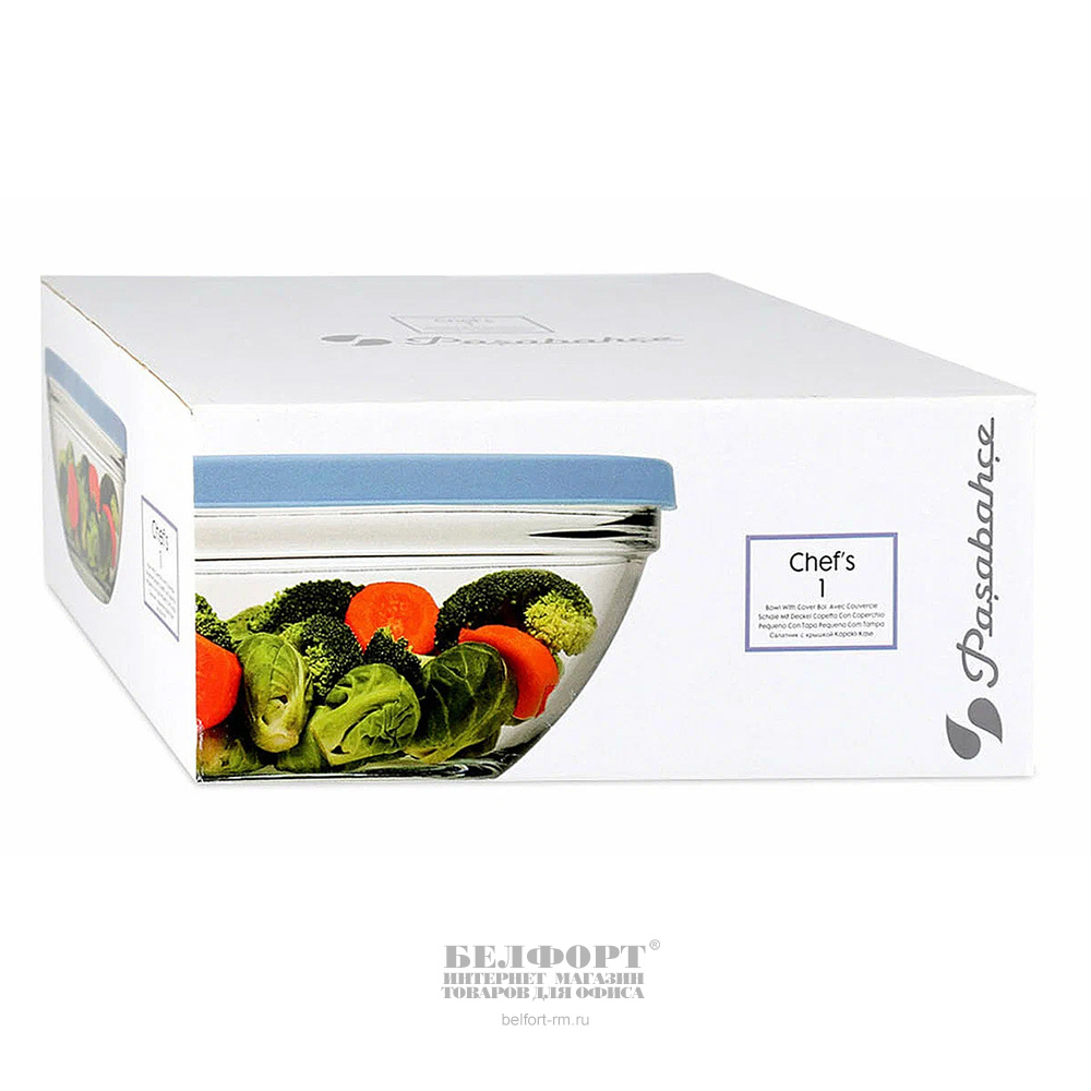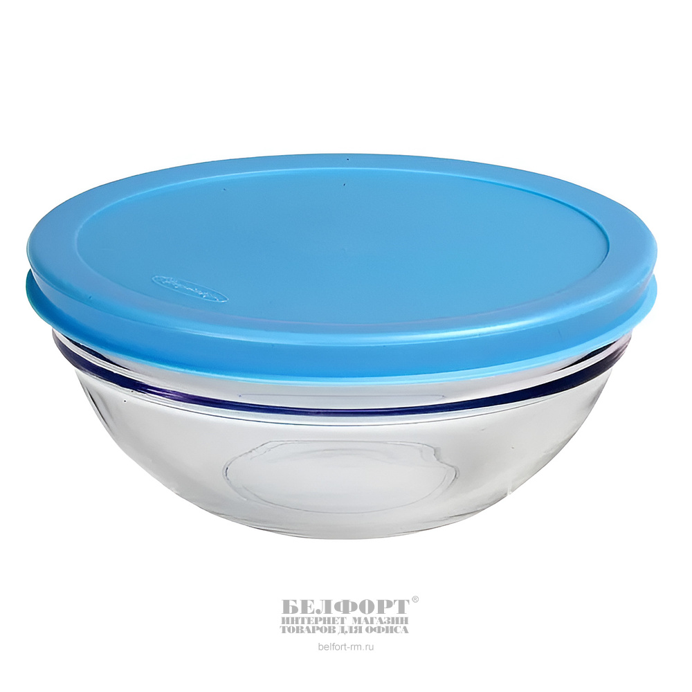 Салатник d 23 см, стекло, Pasabahce, "Шеф", с голубой крышкой