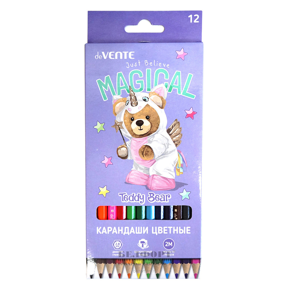 Цветные карандаши 12цв, deVENTE, "Teddy Bear", дерево, без ластика, шестигранные, диаметр грифеля 2,8мм, 2B(2М), картон. уп.