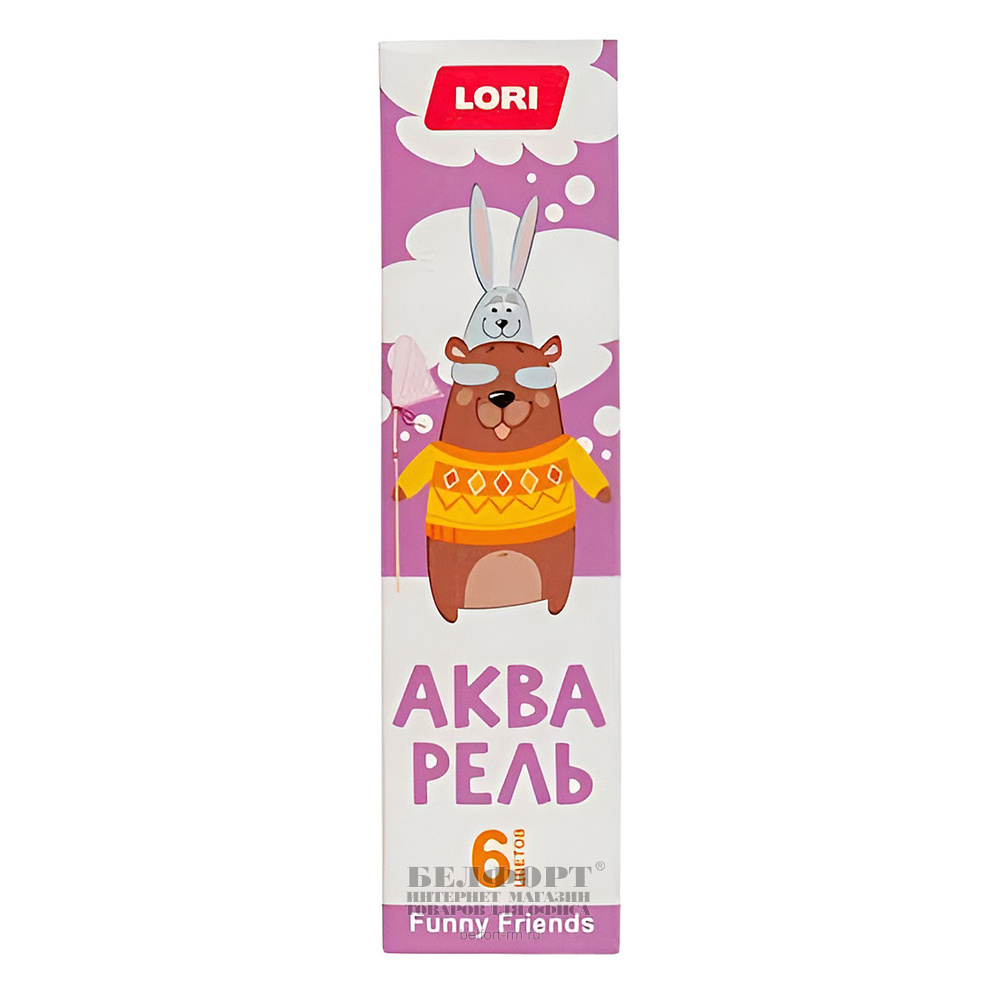 Краски акварель медовая, 6цв, Lori, "Funny Friends", картон. уп.