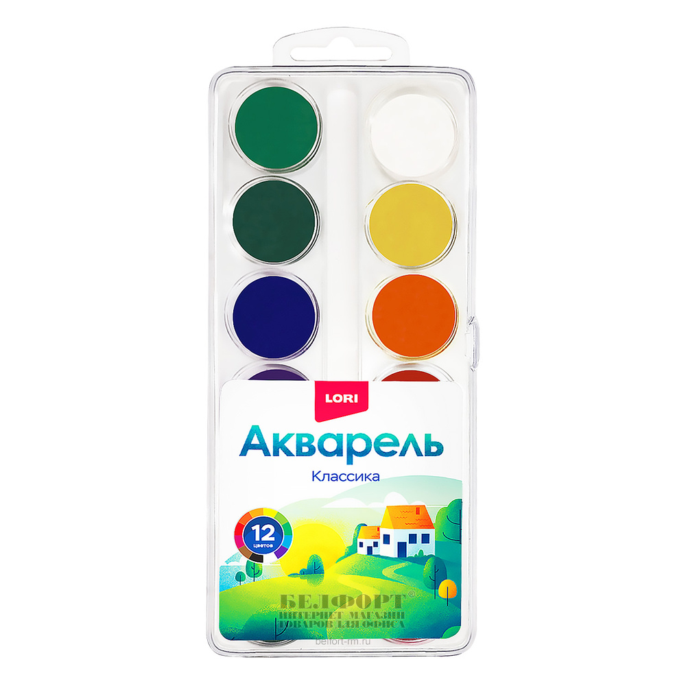 Краски акварель медовая, 12цв, Lori, "Классика", пластик. уп., без кисти