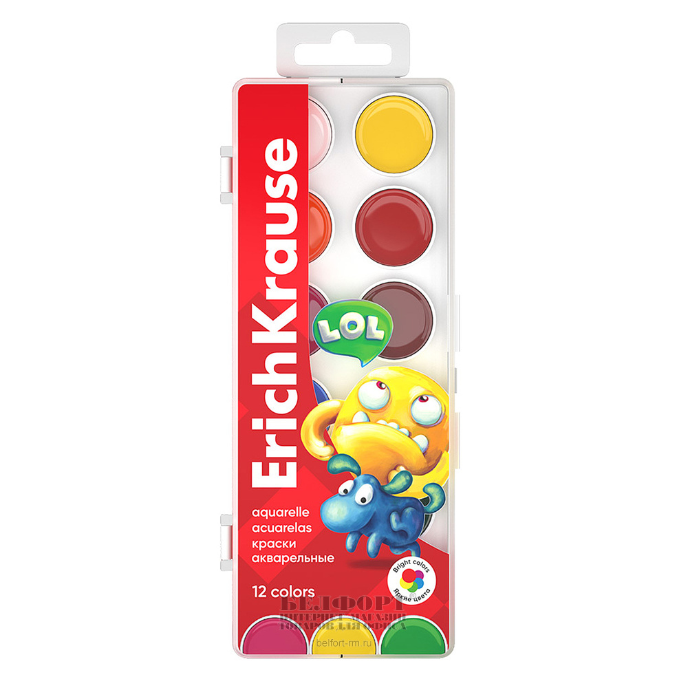 Краски акварель медовая, 12цв, Erich Krause, "Jolly Friends", пластик. уп.