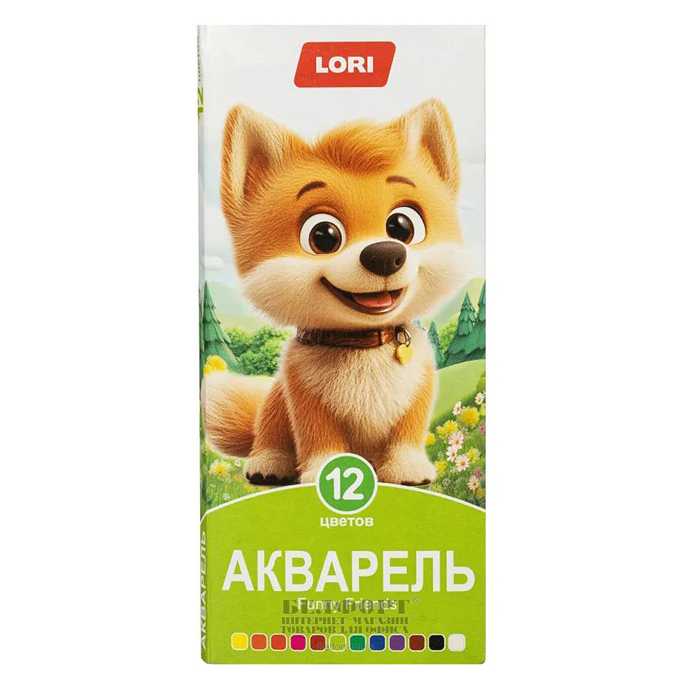 Краски акварель медовая, 12цв, Lori, "Funny Friends. Песик", картон. уп.