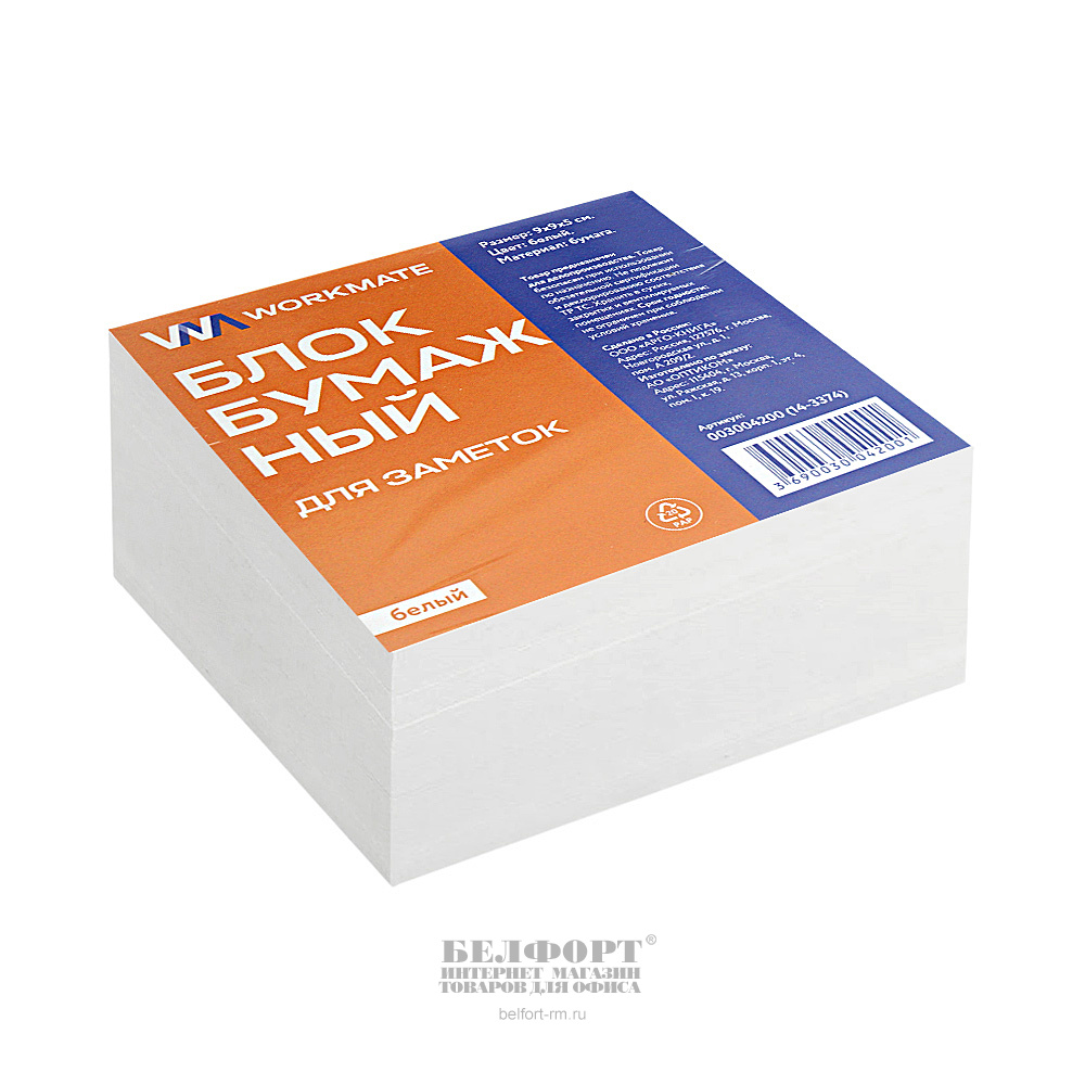 Добавить к сравнению252838Есть в наличии 4 уп.Блок для заметок 80мм*80мм*80мм, белый, 60г⁄м², белизна 92%, Workmate, 800л