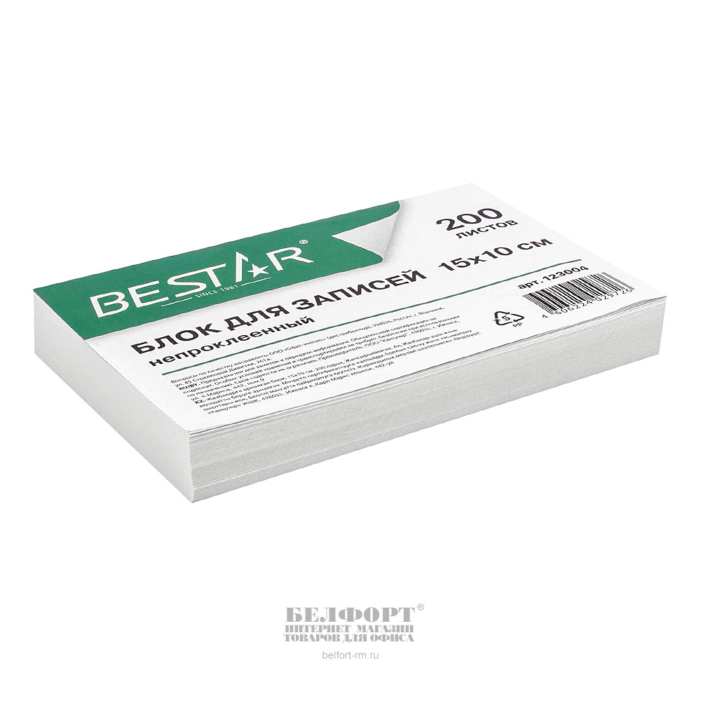 Блок для заметок 150мм*100мм*20мм, белый, 80г⁄м², белизна 92%, Bestar, 200л