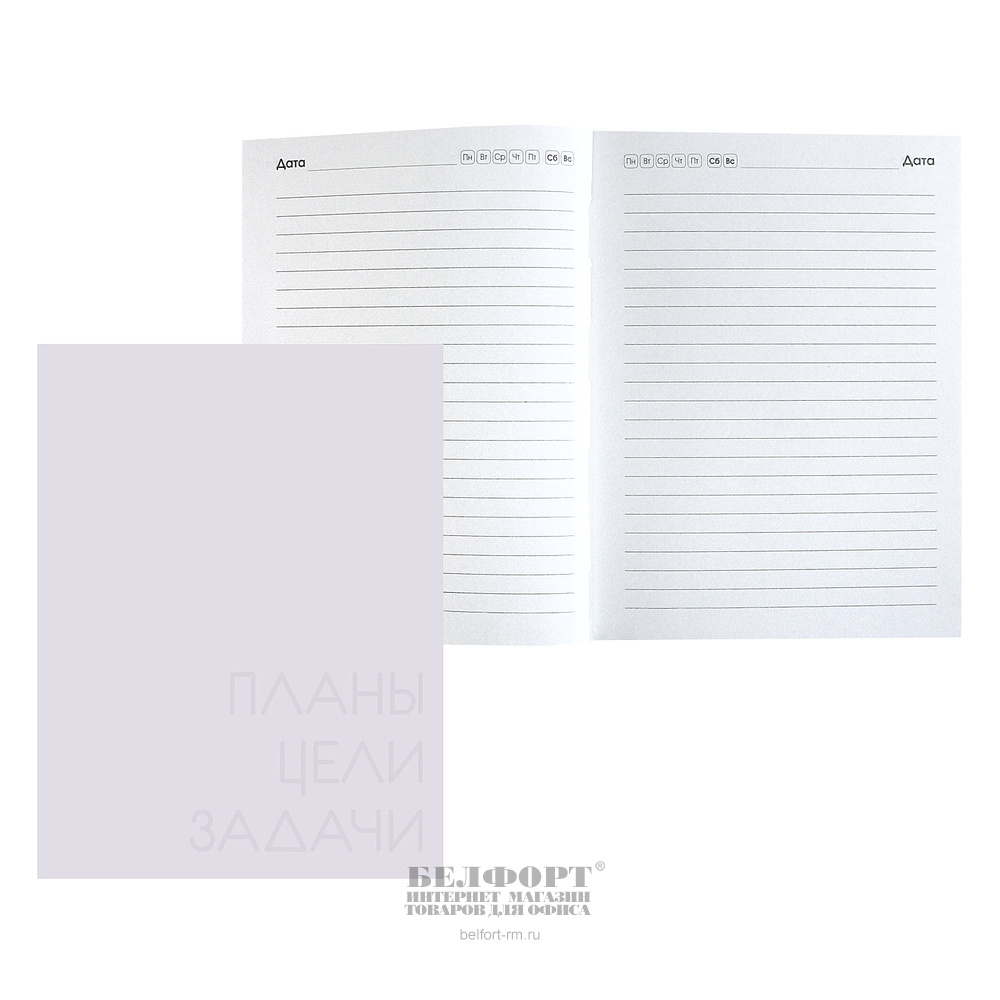Ежедневник недат. А6, картон ламинированный, Listoff, "New day", 128л, в твердом переплете, фиалковый, белый блок, пантонная печать, ламинация soft touch