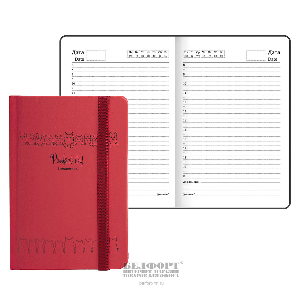 Ежедневник недат. А6, картон ламинированный, Brauberg, "Котики", 128л, в твердом переплете, цветной, белый блок, матовая ламинация, с резинкой