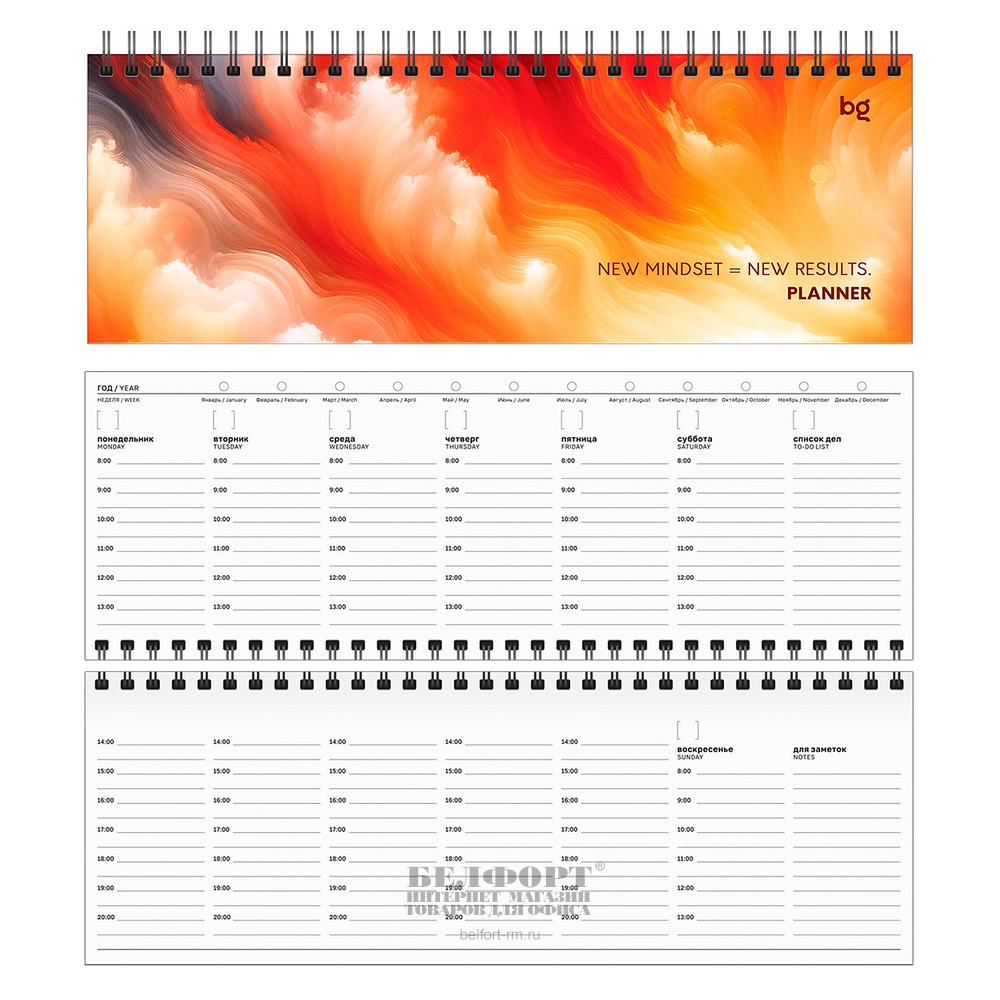 Планинг недат. картон мелованный, BG, "Образ мышления", 56л, 285мм*100мм, на спирали(гребне), цветной, белый блок, матовая ламинация