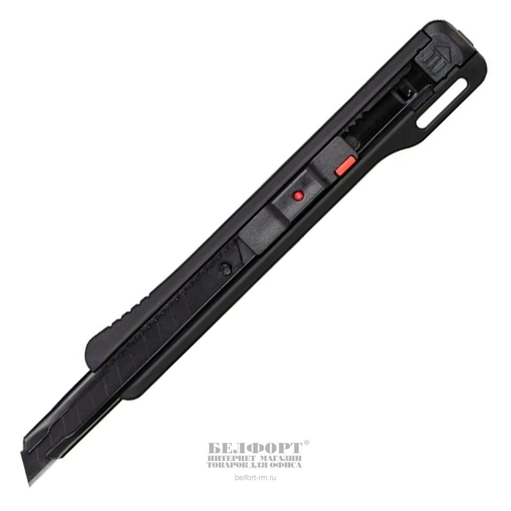 Нож 9мм, Глобус, корпус пластик, черный, с мет. направляющими, блистер 10 запасных лезвий, софт тач